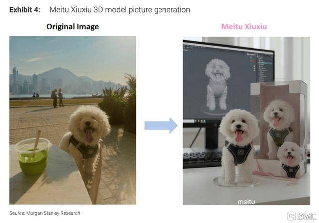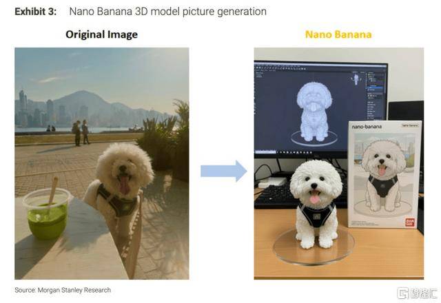 Nano Banana和美图产品的“AI手办”效果对比。来源:摩根士丹利研报