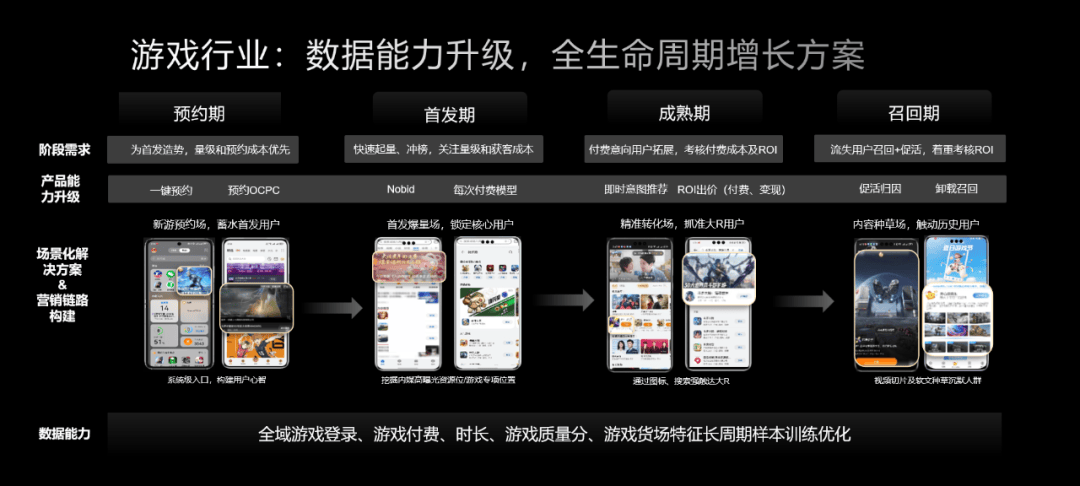 鲸鸿动能的解决方案并非一刀切。其深层逻辑在于 “因游施策”——根据不同品类的用户行为模式与价值曲线,动态配置差异化的资源与策略。这意味着,增长引擎能够自动识别并适配从轻度休闲到重度竞技的各类游戏,实现效率优化。