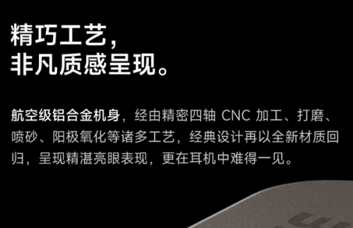 耳机搭载了13.4mm 超大复合高分子动圈单元搭配旗舰级 N48 强力钕磁铁,带来了不错的解析力与动态表现,细节舒展,低频通过增强腔体结构设计,下潜深度和质感较前代提升明显,由于没有主动降噪功能,所以在嘈杂的环境中,它的音色表现有点不尽人意。
